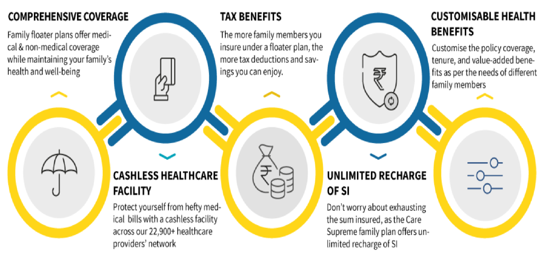 Let us say the hospital cost was ₹2 lakhs. Your insurance provider will pay the hospital's charge, and your annual sum covered will be cut to ₹ 3 lakhs.